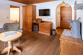 Das großzügige Studio im Turm des Jagdschlössls mit zwei getrennten Schlafzimmern und traditioneller Turm-Wohnstube.